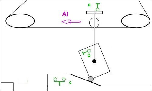 La benne bascule, ce qui finit par relâcher le bouton b.