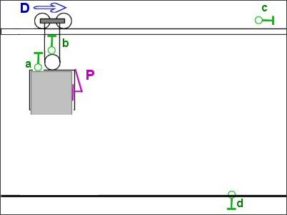 Le moteur de montée M s'arrête et le moteur D de déplacement vers la droite se met en route (naturellement, la pince P continue à fonctionner).