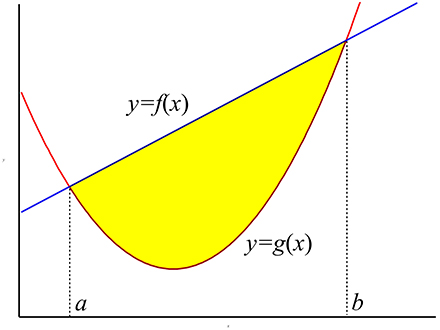 $A = \int_a^b \left[ f(x) - g(x) \right] ~dx$.