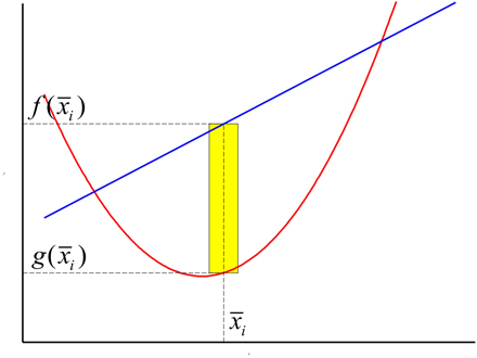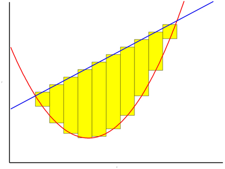 L'aire entre les courbes sera donc approximée par la somme des aires des