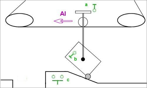 En avançant, la partie métallique supérieure finit par relâcher a, l'avance lente Al de la benne continue.