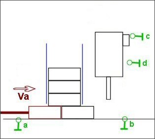Le vérin Va continue à pousser la plaque en dessous de la foreuse, ce qui finit par enfoncer le bouton b.