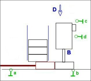 La foreuse descend, ce qui va libérer le bouton c, ce qui ne change rien au niveau des moteurs.