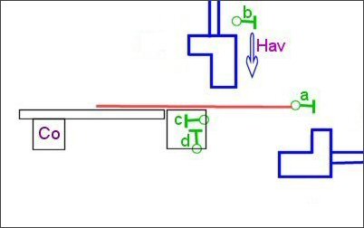 Le plieur Hav avance et libère le bouton b, ce qui ne change rien dans le fonctionnement des moteurs.