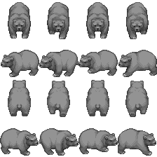 2. turn ('direction'); lets you turn the bear a quarter turn (90°), either to his left or his right.