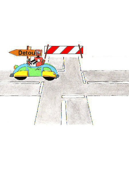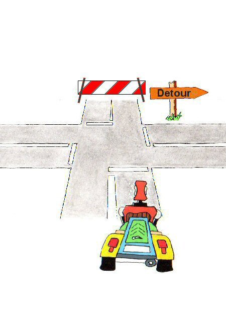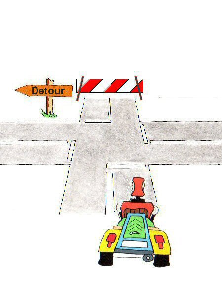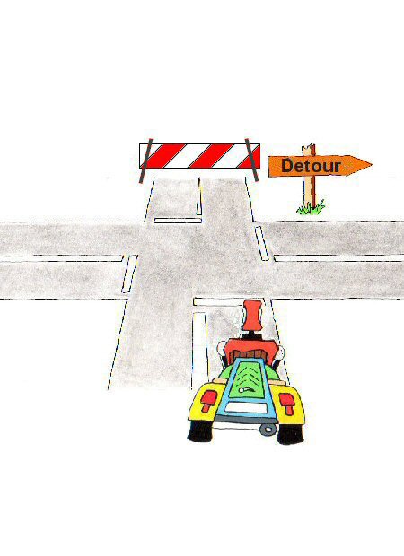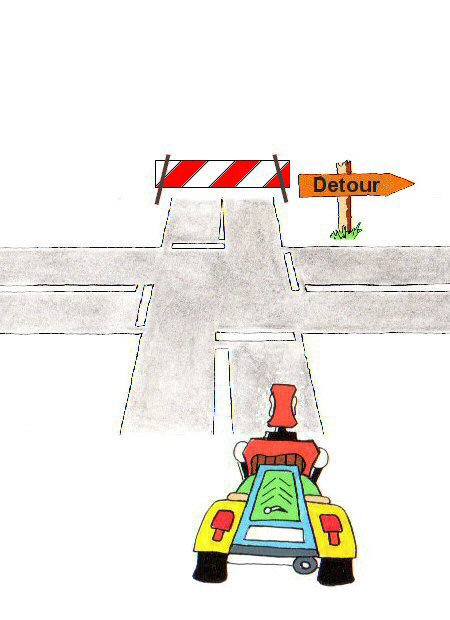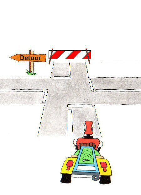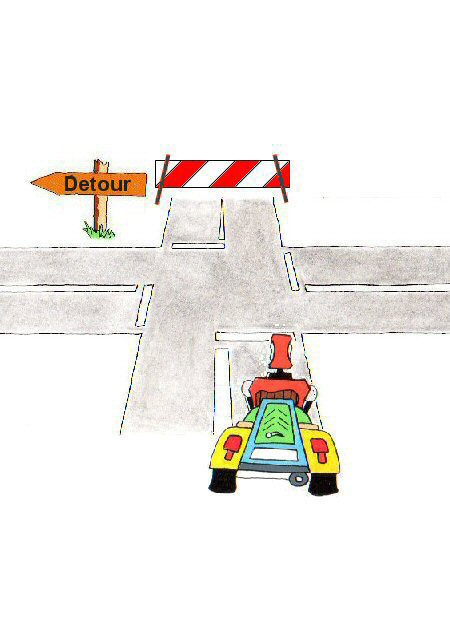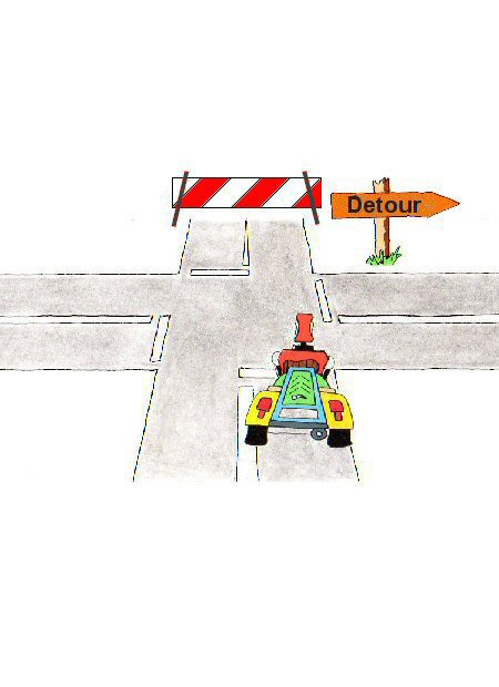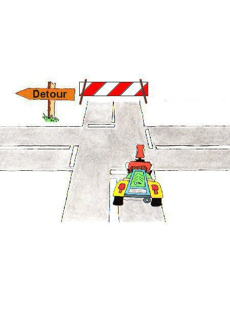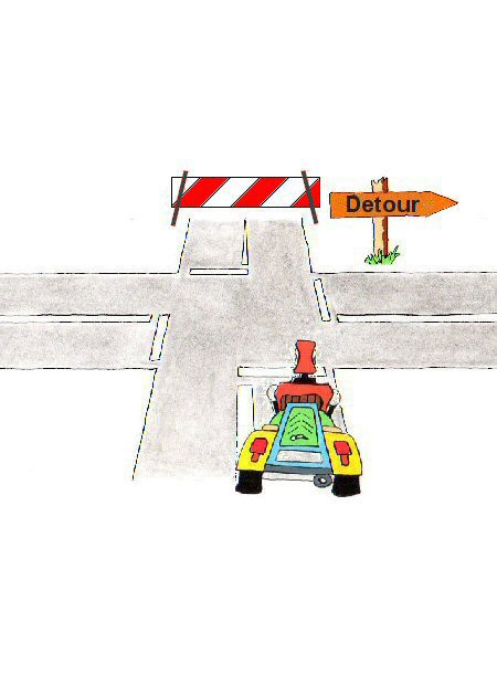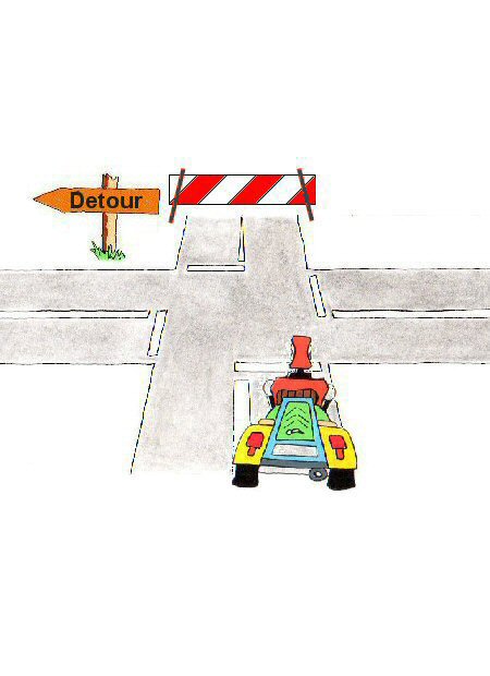 The robot is able to drive its vehicle and react to traffic information such as detours.