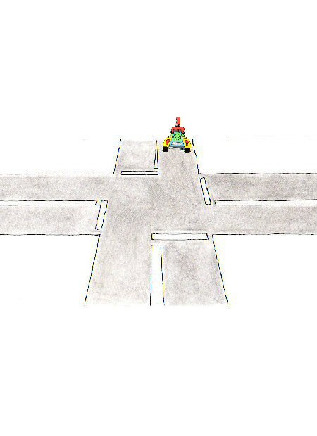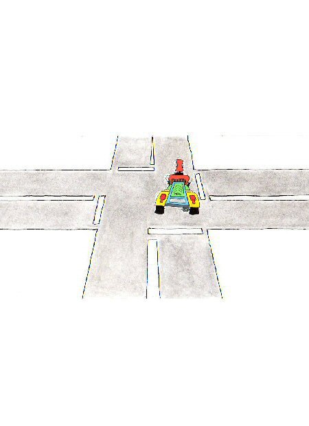 The driver robot usually goes straight ahead, but if there is a left or right detour at the intersection, it must turn left or right.